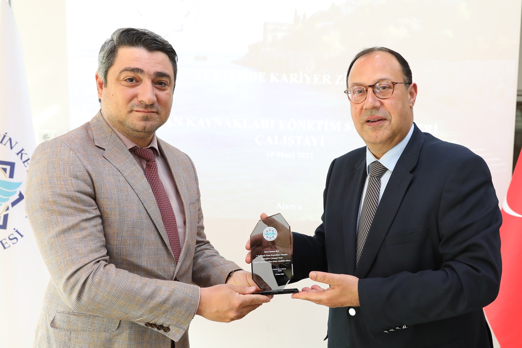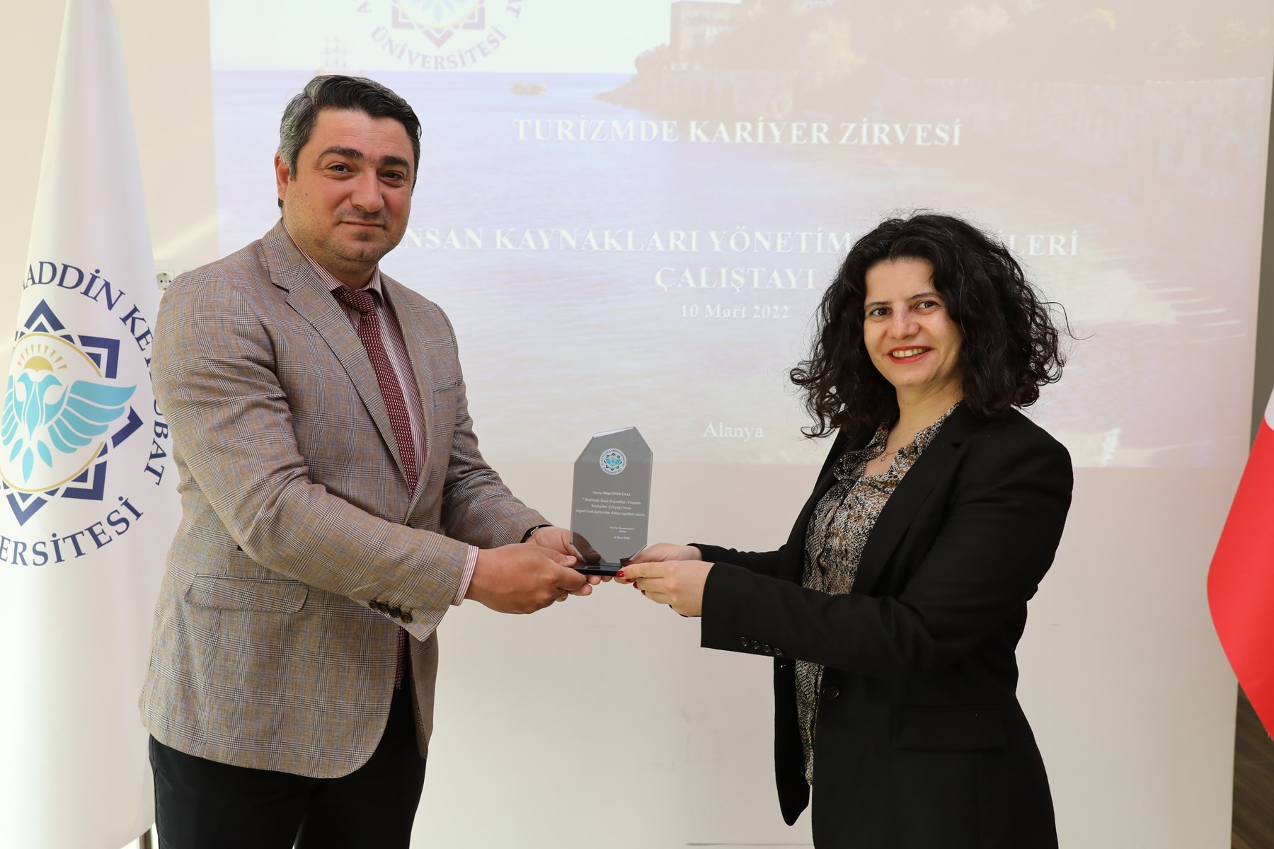 Turizmde İnsan Kaynakları Yönetim Stratejileri” konulu çalıştayın sonunda programa katılan tüm katılımcılara ALKÜ Rektör Yardımcısı Prof. Dr. Can Tansel Tuğcu tarafından plaket ve teşekkür belgesi takdim edildi. Çalıştaya dair tüm detayların önümüzdeki aylarda yayınlanacak olan “Çalıştay raporu” ile tüm sektör paydaşlarıyla paylaşılacağı bildirildi.